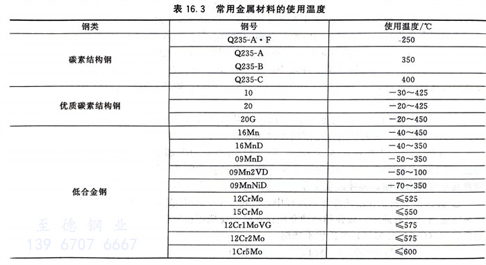 常用金屬材料的使用溫度見表16.3