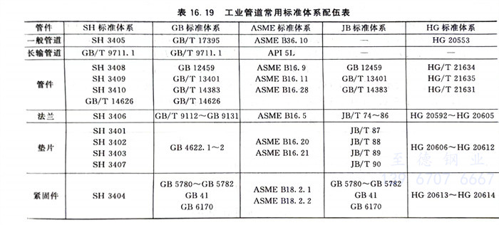 世界(jie)各國應(ying)用(yong)的標準體(ti)系雖(sui)多,但大體(ti)上可以分為兩大類。工業管(guan)道(dao)常用(yong)標準體(ti)系配伍見表16.19。