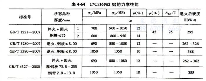 17Cr16Ni2、1.4057、431不銹鋼的力學性能見表4-64。
