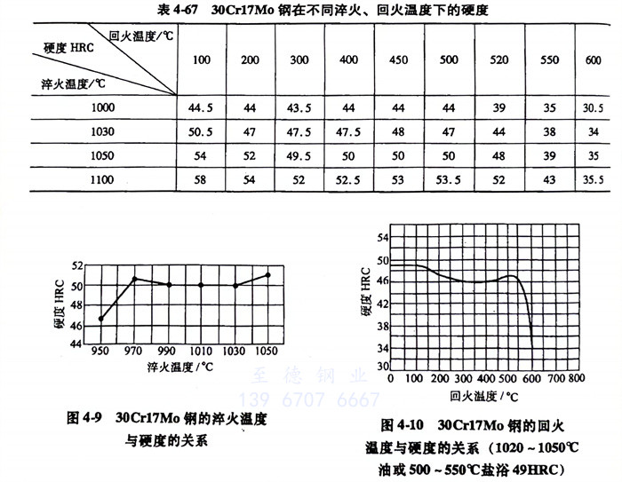 不同淬火、回火溫(wen)度的硬度見表4-67、圖(tu)4-9和圖(tu)4-10。