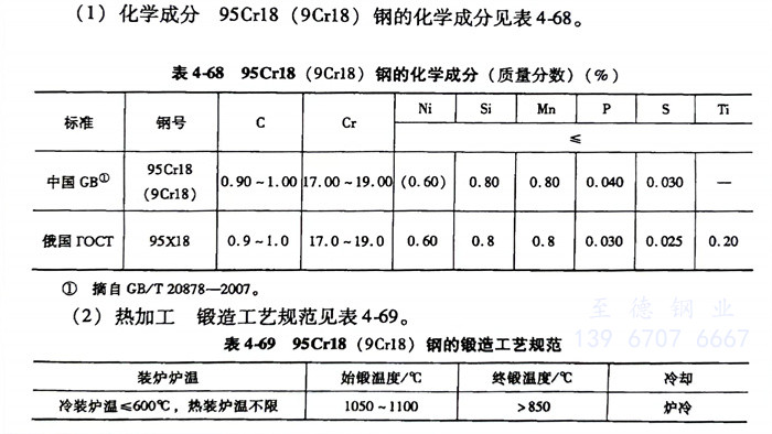 95Cr18 (9Cr18) 不(bu)銹鋼的化學成分見表4-68。