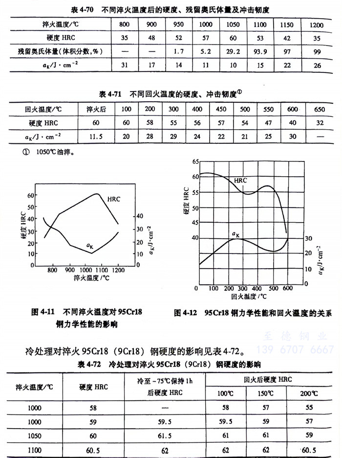 冷處理(li)對(dui)淬火95Cr18 (9Cr18) 不銹(xiu)鋼硬(ying)度的(de)影(ying)響見表(biao)4-72。
