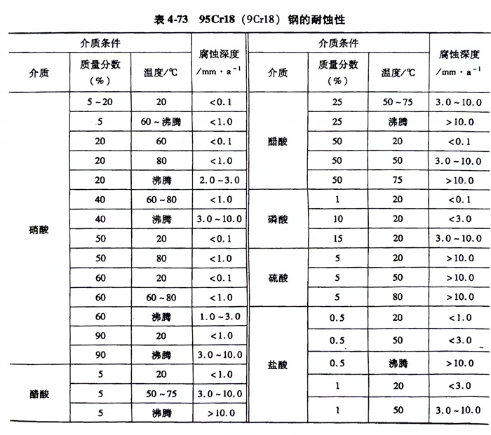 95Cr18 (9Cr18) 不銹鋼的耐蝕性見表4-73。