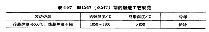 85Cr17(8Cr17)、S44003、SUS440B不銹鋼鍛(duan)造工藝規范(fan)見表4-87。