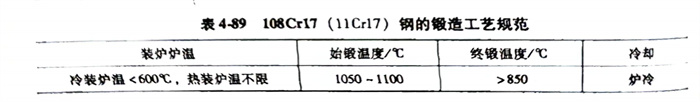 108Cr17(11Cr17)、1.4125、S44004、440C不銹鋼鍛造工藝規范見表4-89。
