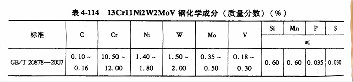 13Crl1Ni2W2MoV(1Cr11Ni2W2MoV)不銹(xiu)鋼的化學成分見表(biao)4-114。