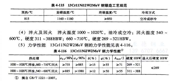 13Crl1Ni2W2MoV(1Cr11Ni2W2MoV)不銹鋼(gang)的鍛造工藝規范(fan)見表4-115。
