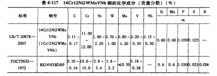 14Cr12Ni2WMoVNb(1Cr12Ni2WMoVNb)不銹鋼的化學成分見表4-117。