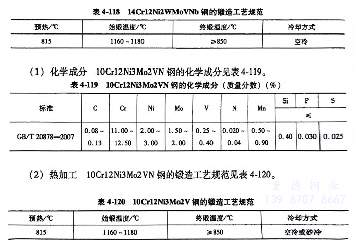 14Cr12Ni2WMoVNb(1Cr12Ni2WMoVNb)不銹鋼的鍛造(zao)工藝規范見表4-118。