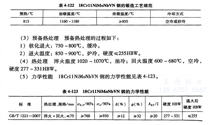 18Cr11NiMoNbVN(2Cr11NiMoNbVN)不銹(xiu)鋼的鍛造(zao)工(gong)藝規范見表(biao)4-122。