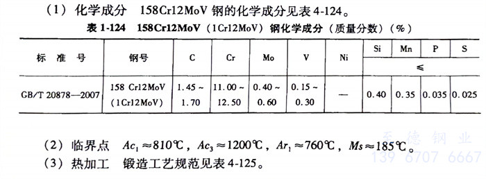 158Cr12MoV(1Cr12MoV)不銹鋼的化學成分見表4-124。
