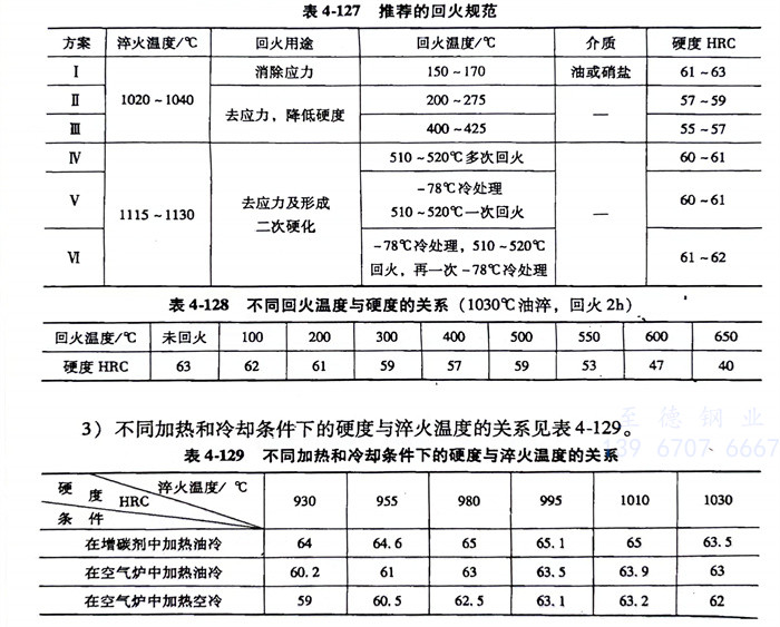 2. 回(hui)(hui)火規(gui)范見(jian)表4-127,不同回(hui)(hui)火溫度與硬(ying)度的關系見(jian)表4-128。
