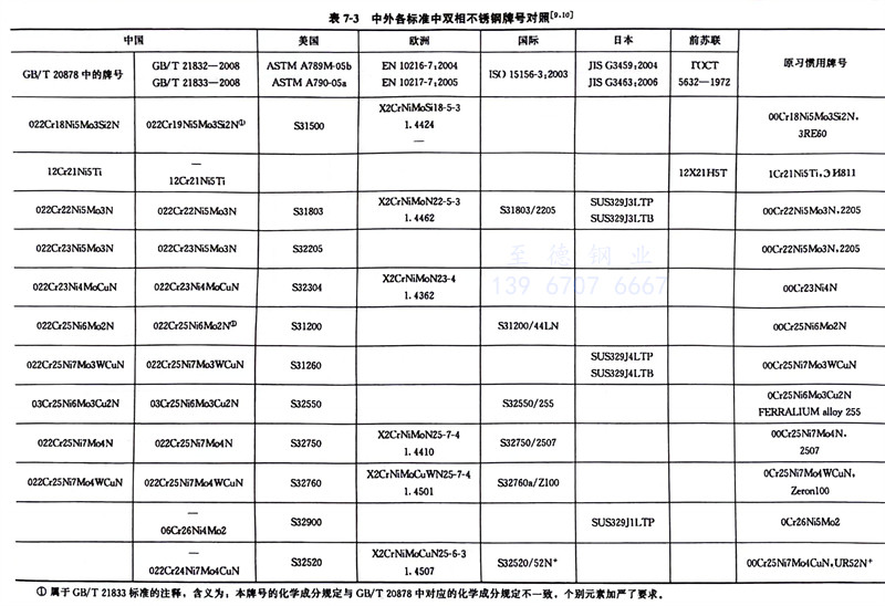 我國(guo)(guo)雙相(xiang)不(bu)銹(xiu)(xiu)鋼(gang)(gang)牌號和(he)化學(xue)成分(fen)見表(biao)(biao)7-1,力學(xue)性能見表(biao)(biao)1-8,我國(guo)(guo)生產雙相(xiang)不(bu)銹(xiu)(xiu)鋼(gang)(gang)的(de)企業見表(biao)(biao)7-1,國(guo)(guo)外常見雙相(xiang)不(bu)銹(xiu)(xiu)鋼(gang)(gang)牌號和(he)化學(xue)成分(fen)見表(biao)(biao)7-2,中外雙相(xiang)不(bu)銹(xiu)(xiu)鋼(gang)(gang)牌號對照見表(biao)(biao)7-3。