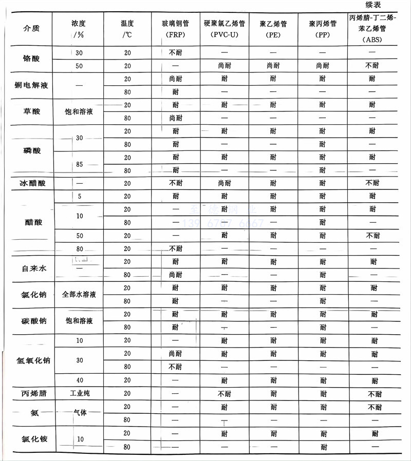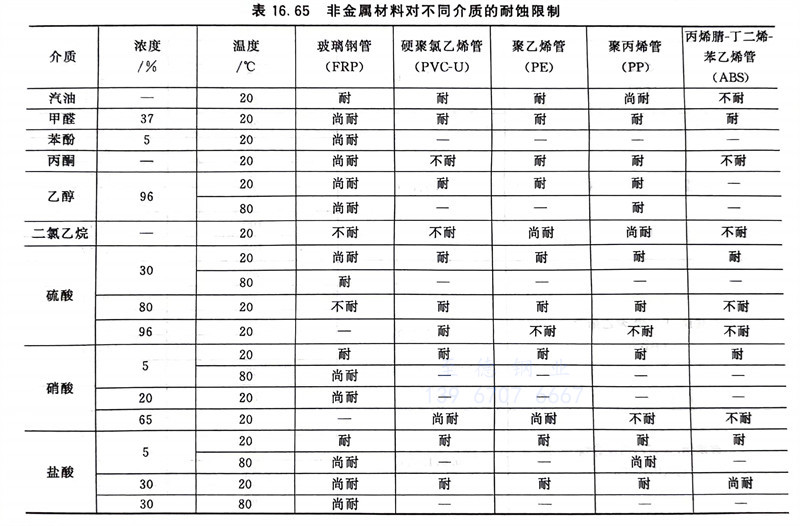 非金屬材料管道對不同介質的耐蝕限(xian)制
