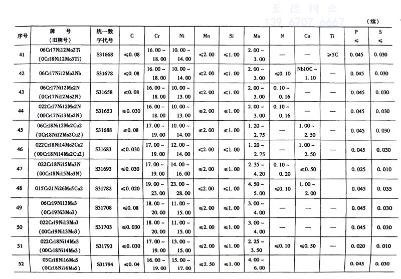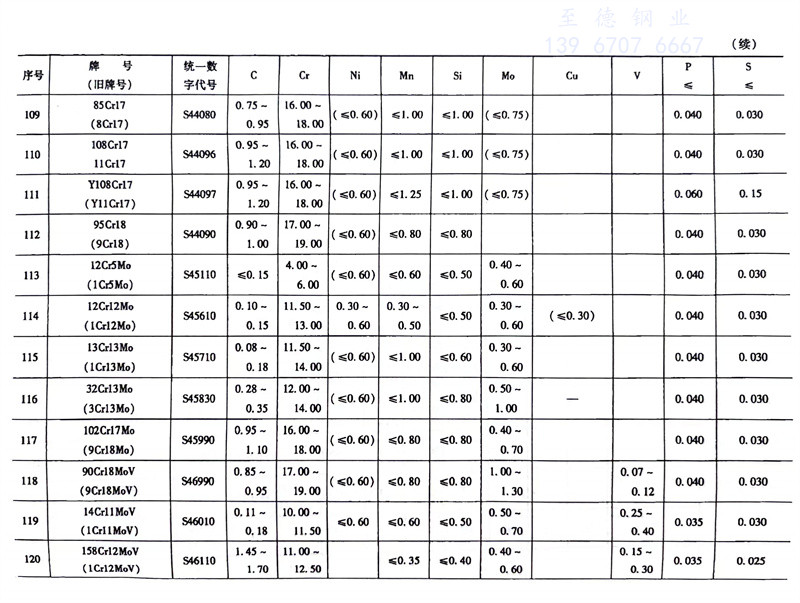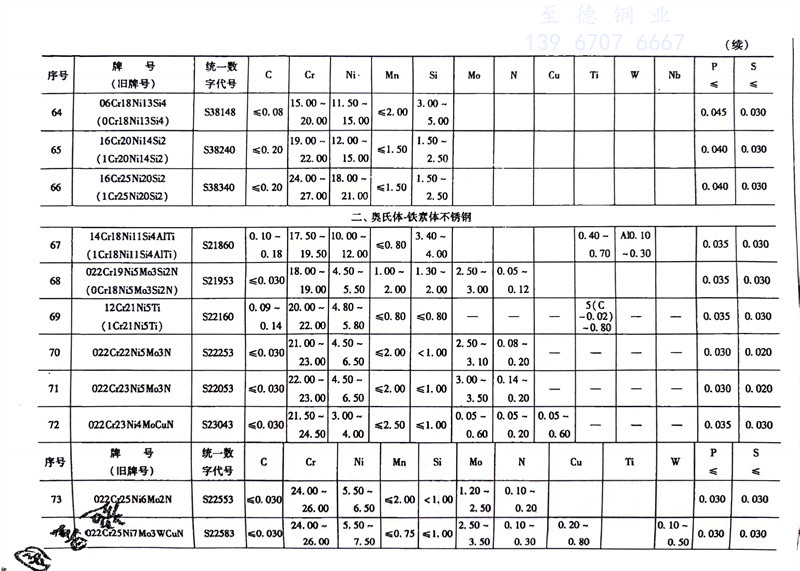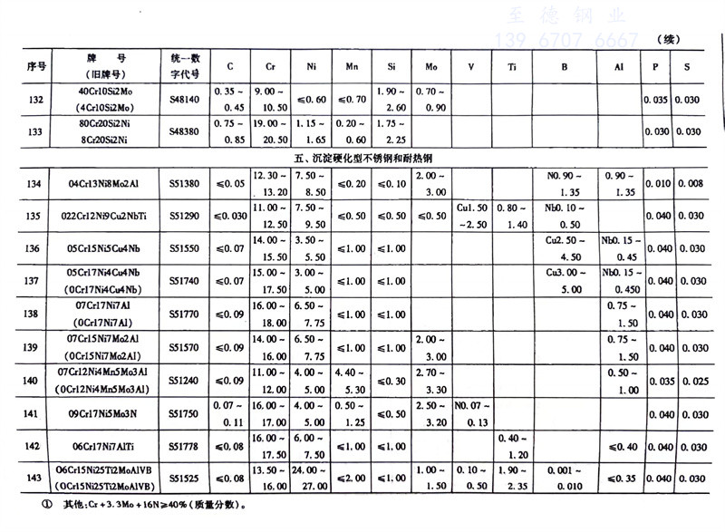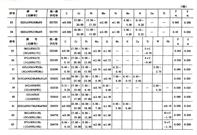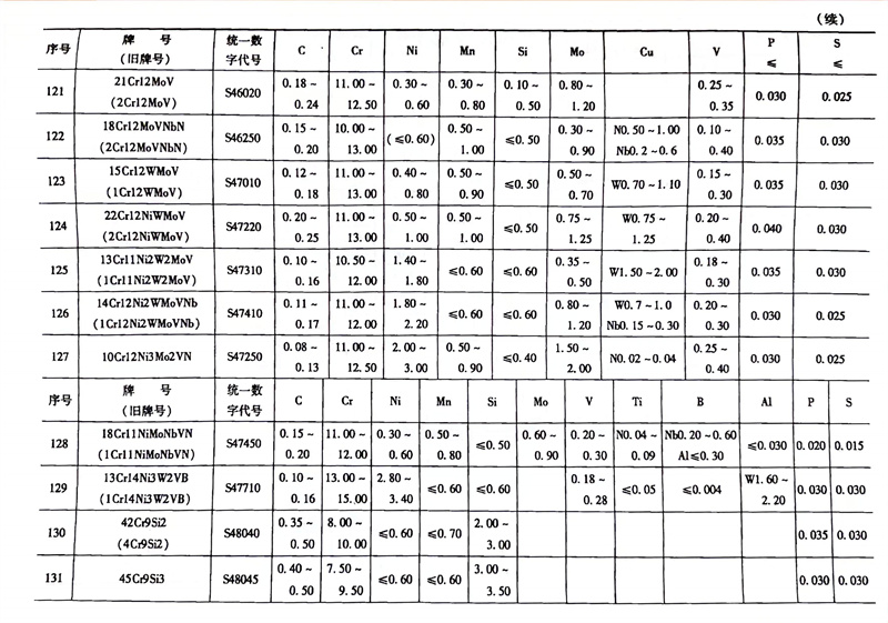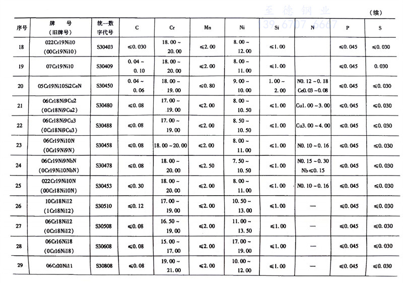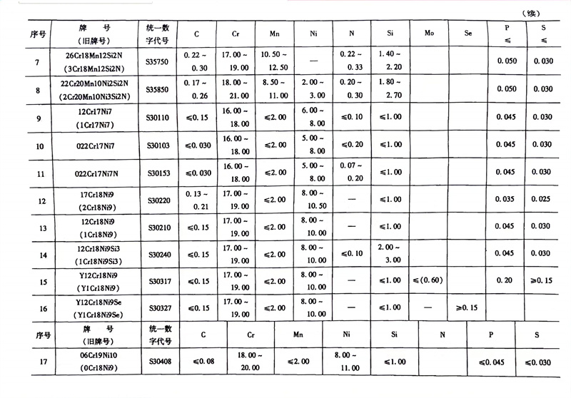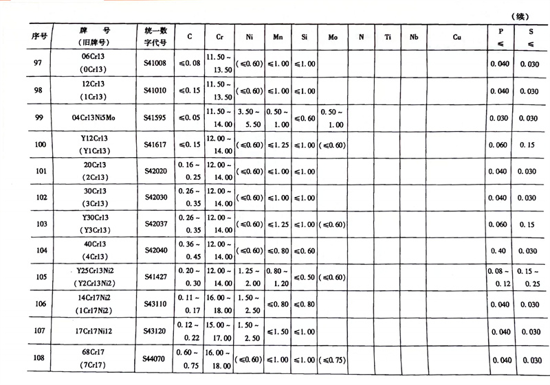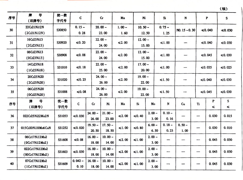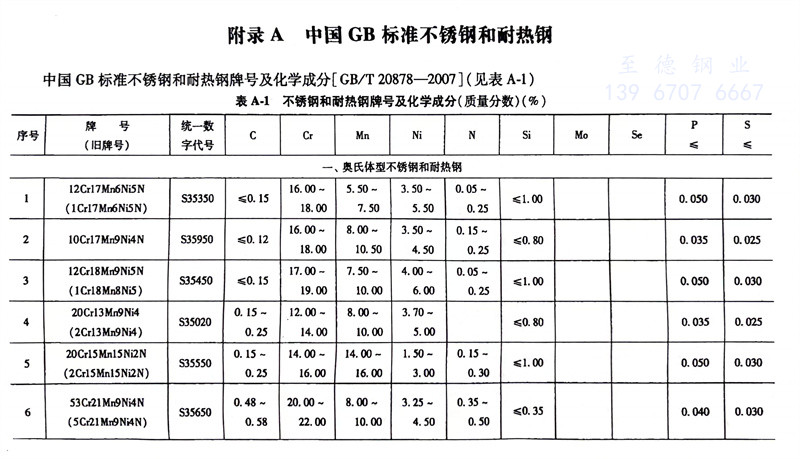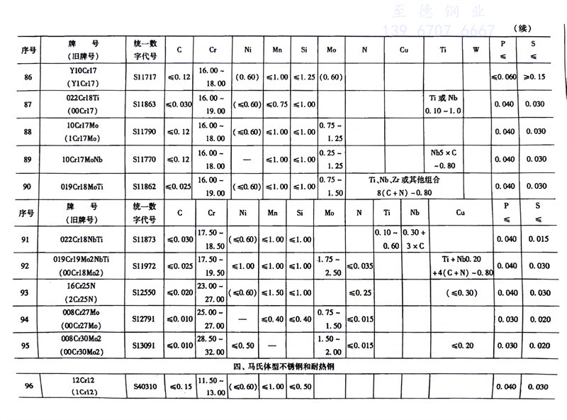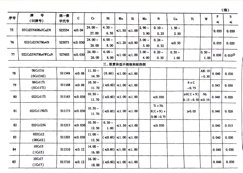 中國GB標準不銹鋼和耐熱鋼牌號及化學成分表