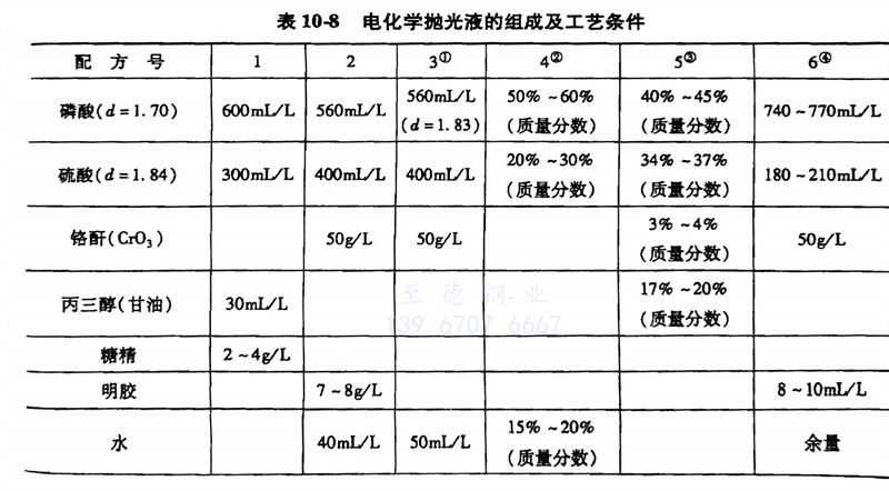 電化學拋光(guang)液的組(zu)成及工藝條件見(jian)表(biao)10-8。